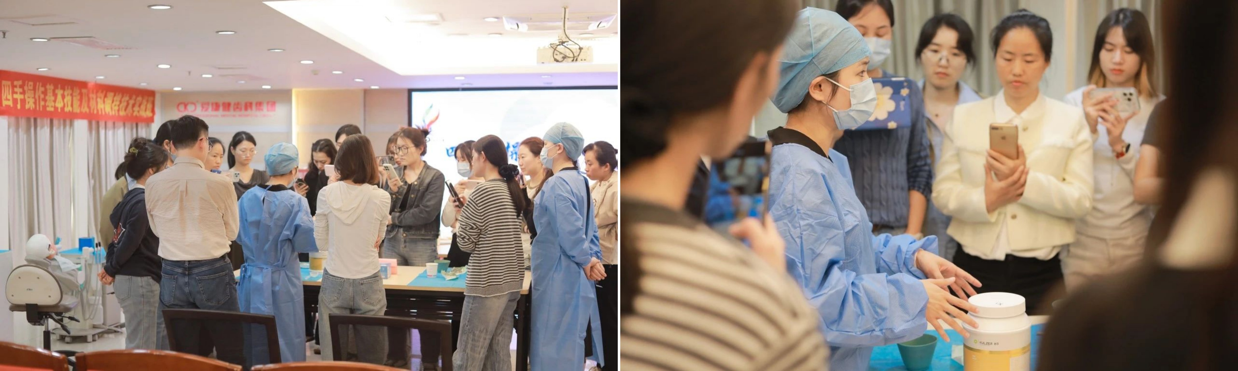 隨後,希瑪愛康健裕亨口腔診所護士長李澤芳結合多年臨(lin) 床實踐經驗,通過真實案例生動剖析了《四手操作在臨(lin) 床應用中的要點與(yu) 難點》,並針對《各類印模材料調拌技術》的操作規範及注意事項進行了細致講解。學員們(men) 專(zhuan) 注聆聽、踴躍互動,理論知識與(yu) 實踐經驗的深度融合,為(wei) 後續實操訓練打下了堅實基礎。