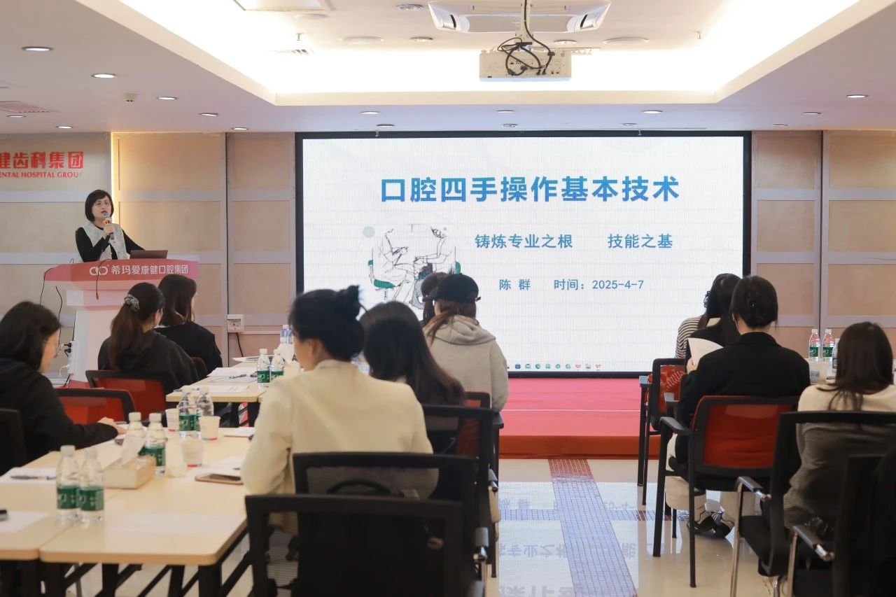 理論教學立足臨(lin) 床,注重實效。希瑪愛康健口腔集團護理部培訓主任陳群以《口腔四手操作基本技術》為(wei) 主題展開首場授課,係統闡釋了四手操作的核心概念與(yu) 臨(lin) 床優(you) 勢,著重強調椅旁護士培養(yang) 前瞻性思維的重要性——要始終做到“想在醫生前麵,做在操作前麵”。課程詳細規範了醫護體(ti) 位調整、器械精準傳(chuan) 遞等操作細節,並現場示範了《玻璃離子水門汀調拌技術》的標準流程,深入講解材料配比的黃金標準等關(guan) 鍵知識點。