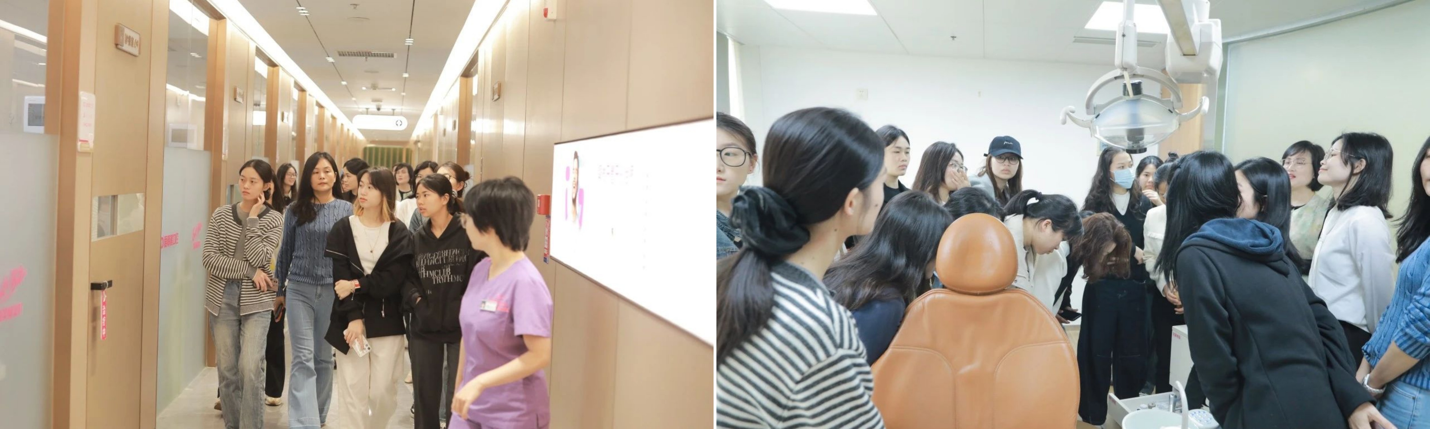 深圳愛康健口腔醫院護理部主任謝曉蘭(lan) 帶領學員們(men) 深入診室,開展了一場別開生麵的沉浸式實戰教學。從(cong) 四手操作設備的科學布局、器械標準化歸位,到口腔耗材的分類管理與(yu) 標識化係統,再到醫患溝通中的微笑服務技巧,全方位展示了如何將高效診療與(yu) 人文關(guan) 懷完美融合。