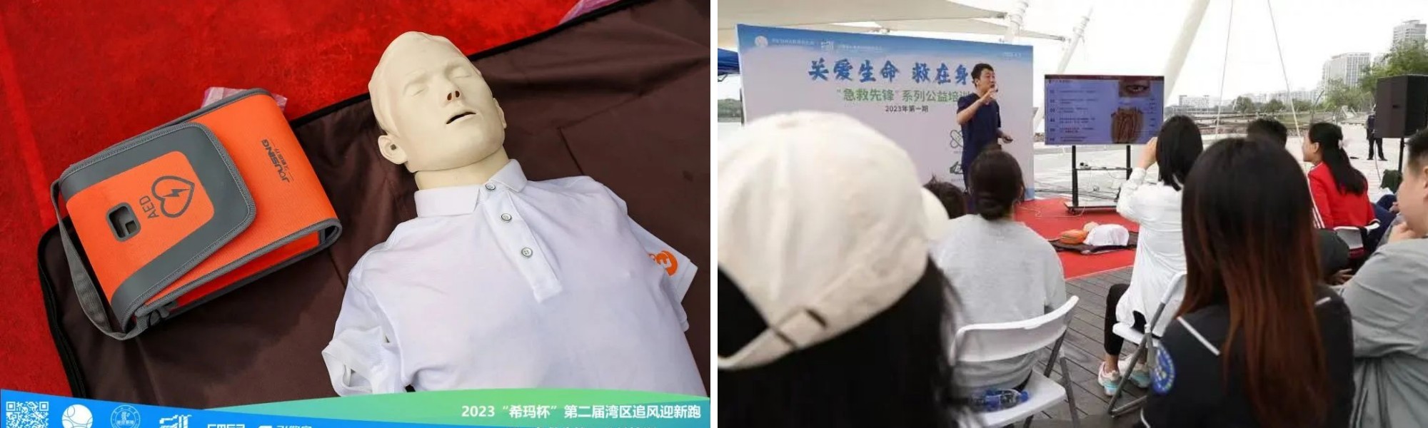 為(wei) 增強大家的健康意識,活動現場還開展了“關(guan) 愛生命 救在身邊‘急救先鋒’係列公益培訓”。來自深圳市多家三甲醫院的急診醫師圍繞創傷(shang) 包紮、CPR心肺複蘇術、海姆立克急救法、AED自動體(ti) 外除顫等市民朋友關(guan) 心的急救技能及急救措施進行詳細講解。
