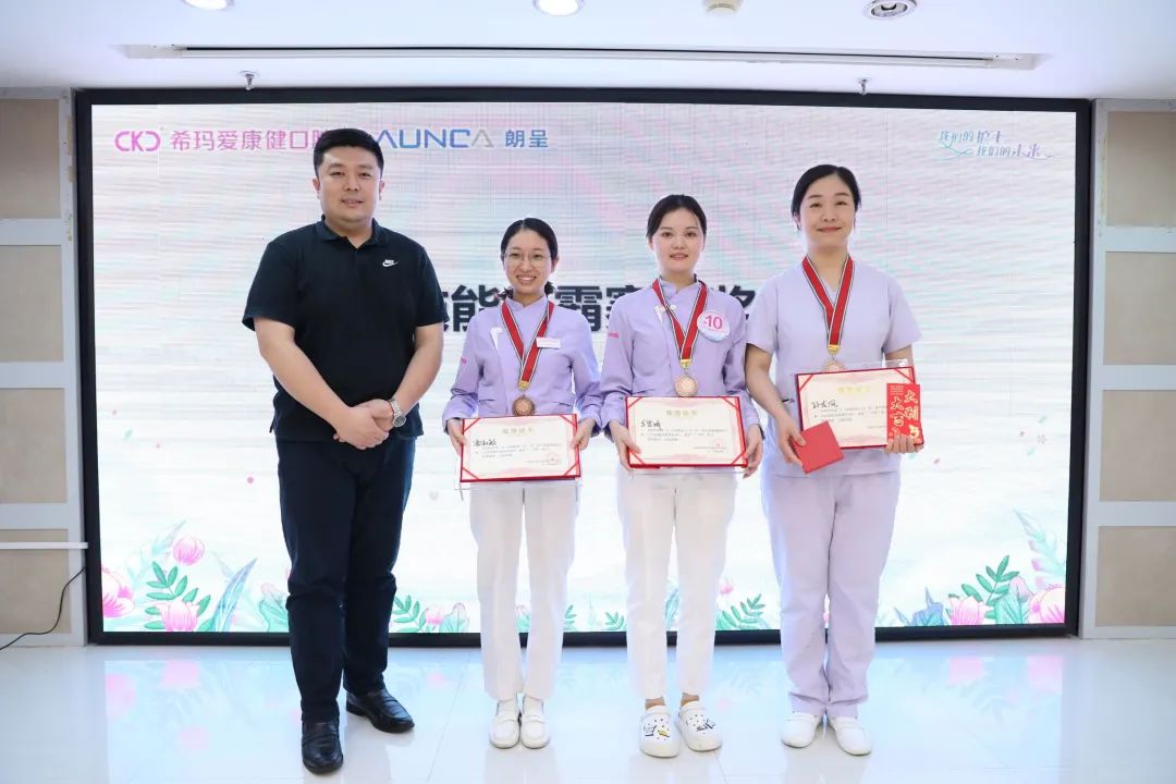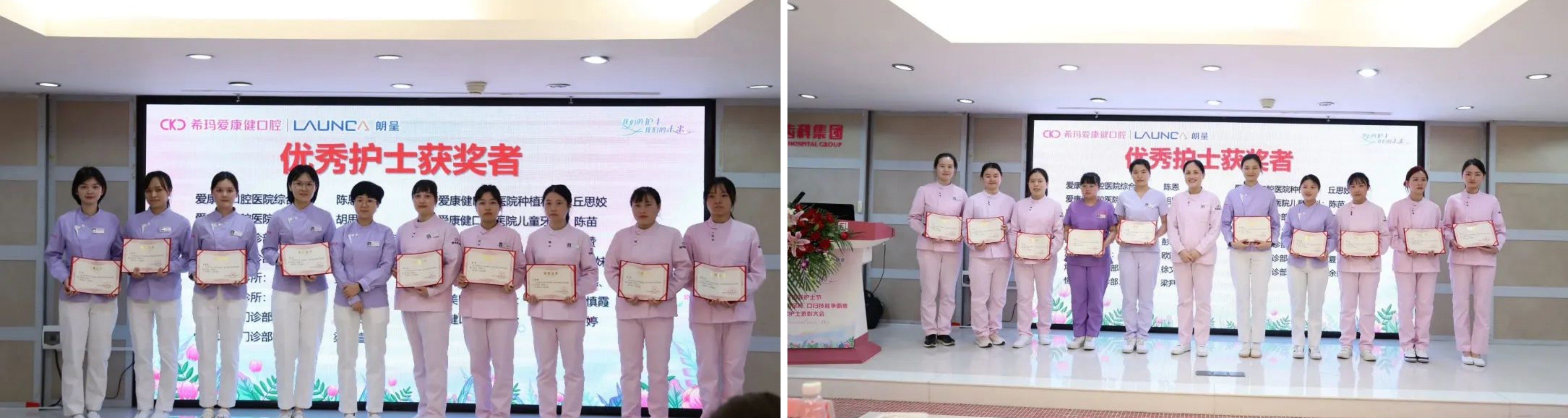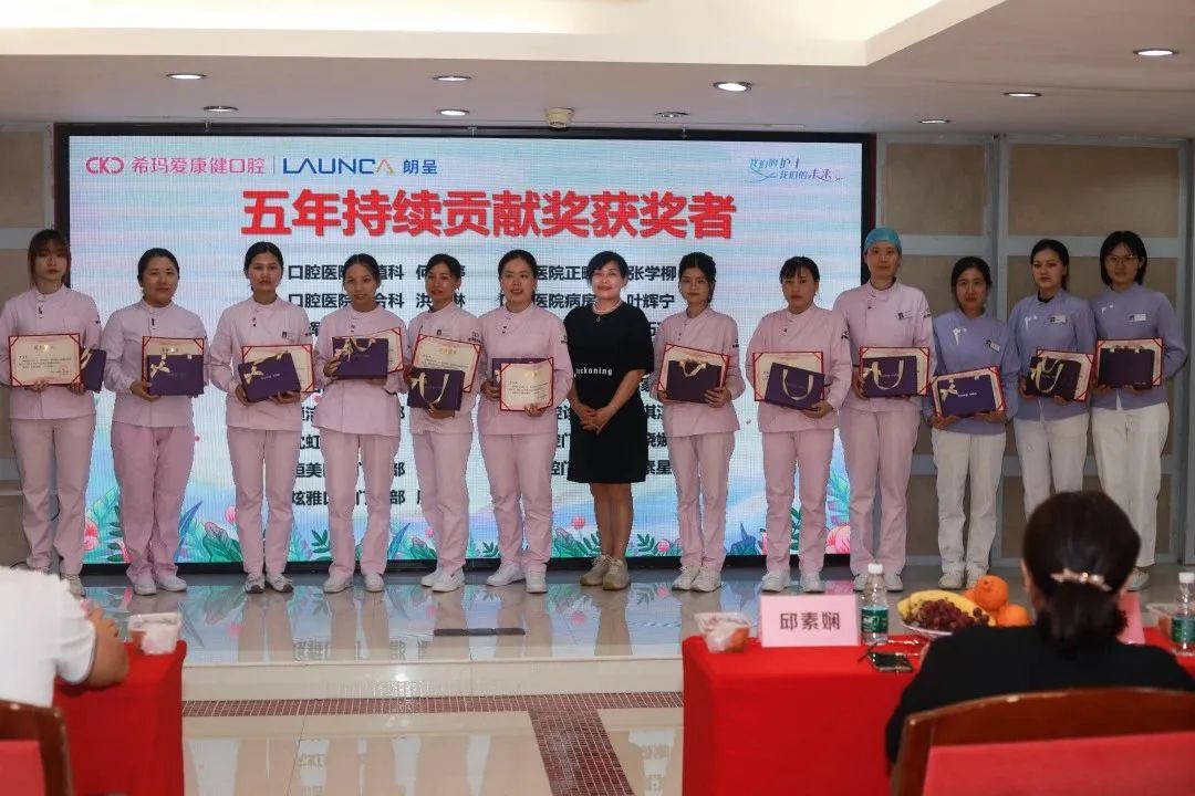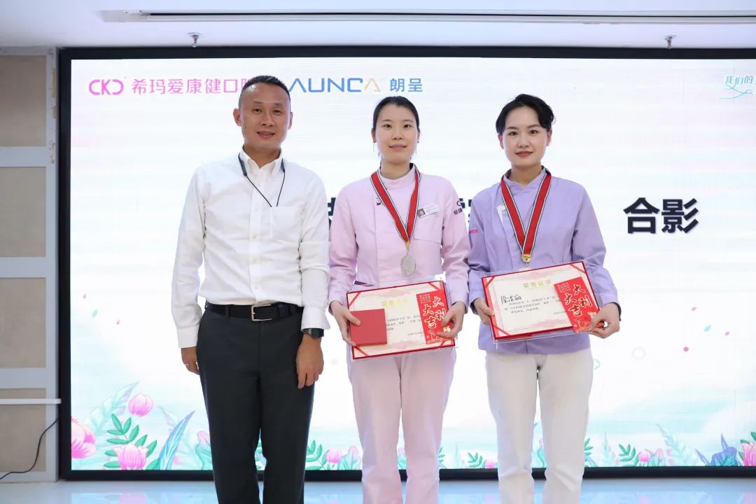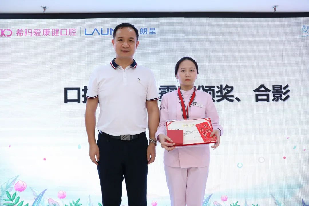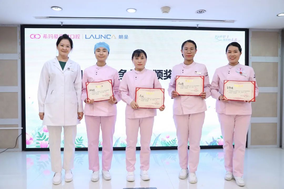 5月10日,第112個(ge) 國際護士節來臨(lin) 之際,希瑪愛康健口腔集團於(yu) 深圳愛康健口腔醫院八樓舉(ju) 辦了“希瑪愛康健&朗呈杯”口掃技能爭(zheng) 霸賽暨優(you) 秀護士表彰大會(hui) ,希瑪愛康健口腔集團董事邱淑賢女士、集團醫療管理中心總監唐輝、副總監劉章智、深圳愛康健口腔醫院院長鞏賢平、雅健口腔門診院長**、集團護理部主任謝少瑜、培訓主任陳群、院感科主任張薇、采購部經理劉麗(li) 娜、口腔醫院護理部副主任謝曉蘭(lan) ,以及朗呈醫療科技有限公司董事長呂鍵、總經理楊屹強出席了本次表彰大會(hui) 。本次表彰大會(hui) 旨在表彰和激勵優(you) 秀護理人員在口腔護理工作中的傑出表現,同時進一步加強數字化醫療技術的應用,營造集團醫護工作者“比學趕幫超”的良好學習(xi) 氛圍。