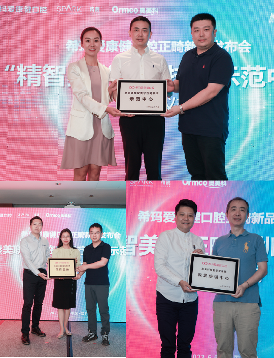 在發布會(hui) 上,奧美科Ormco公司向希瑪愛康健口腔授予了“奧美科精智美學正畸技術示範中心”、“臻美聯合版臨(lin) 床醫療技術示範基地”、“奧美科精智美學正畸深圳培訓中心”三大榮譽牌匾,標誌著雙方將持續發揮各自優(you) 勢,為(wei) 數智化正畸技術的研究和應用賦能。