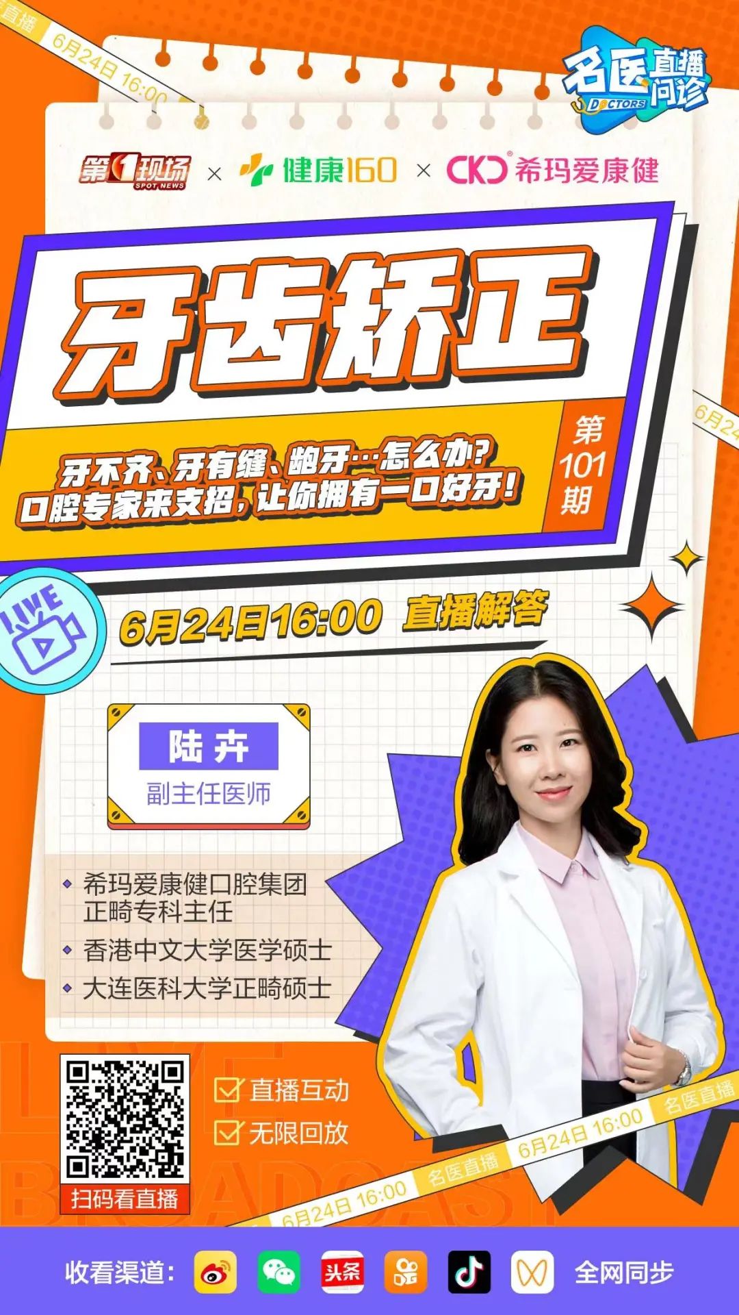 6月24日希瑪愛康健口腔集團正畸專(zhuan) 科主任,香港中文大學醫學碩士,大連醫科大學正畸碩士陸卉醫生做客由健康 160 聯合深圳廣電都市頻道第一現場推出的《名醫直播問診》欄目,為(wei) 廣大市民帶來“牙齒矯正”專(zhuan) 場直播。...