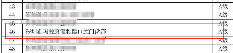 近日,深圳市衛龍華區社會(hui) 醫療行業(ye) 協會(hui) 發布《2023年度龍華區社會(hui) 辦醫療機構醫療質量評估結果發布》,深圳希瑪愛康健雅健口腔門診部獲評醫療質量A級單位!