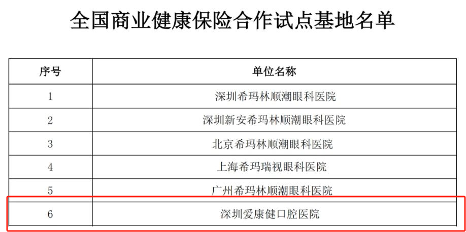 近日,深圳愛康健口腔醫院憑借其在醫療服務質量和商保合作領域的突出表現,成功入選首批《全國商業(ye) 健康保險合作試點基地》名單,為(wei) 該醫院在商業(ye) 健康保險合作領域開啟了新的篇章。