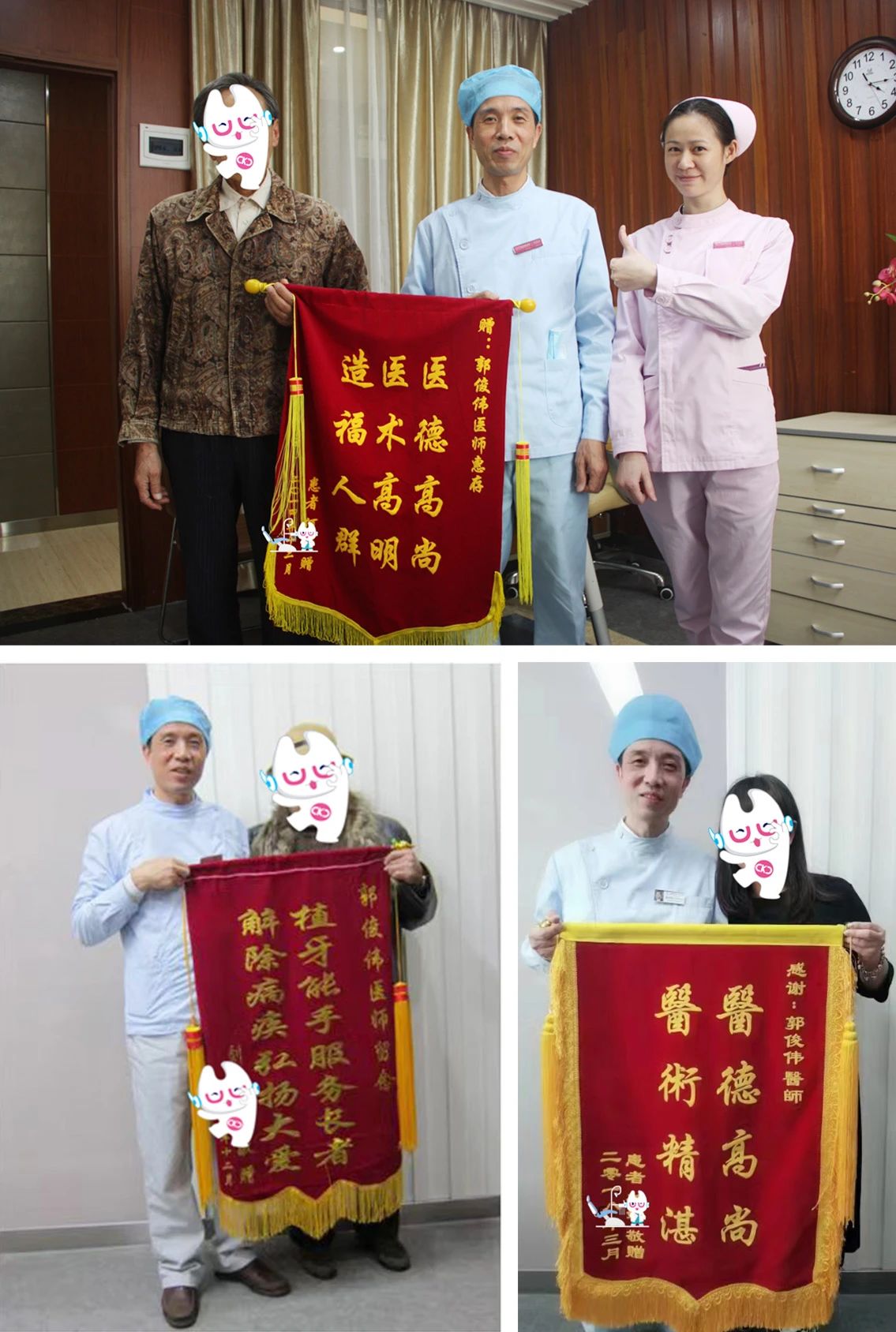 除了對患者的精心治療,郭俊偉(wei) 院長還與(yu) 許多老客戶們(men) 建立了深厚的友誼。一位香港退休牙醫的一家人20多年來一直都找他看牙,並介紹眾(zhong) 多朋友。每逢節日,郭俊偉(wei) 院長總能收到他們(men) 的電話問候、短信祝福。他的診間裏更是擺滿了大大小小的感謝牌與(yu) 錦旗。這些榮譽和認可,都是他多年來堅守醫德、用心服務的最好見證。