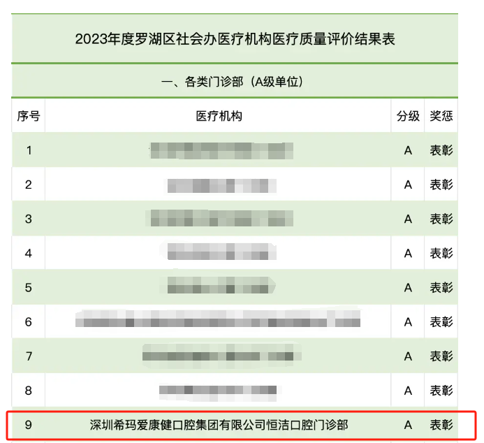 希瑪愛康健口腔康輝門診和恒潔門診部在羅湖區衛生健康局2023年度社會(hui) 辦醫療機構醫療質量評價(jia) 中榮獲A級單位。...