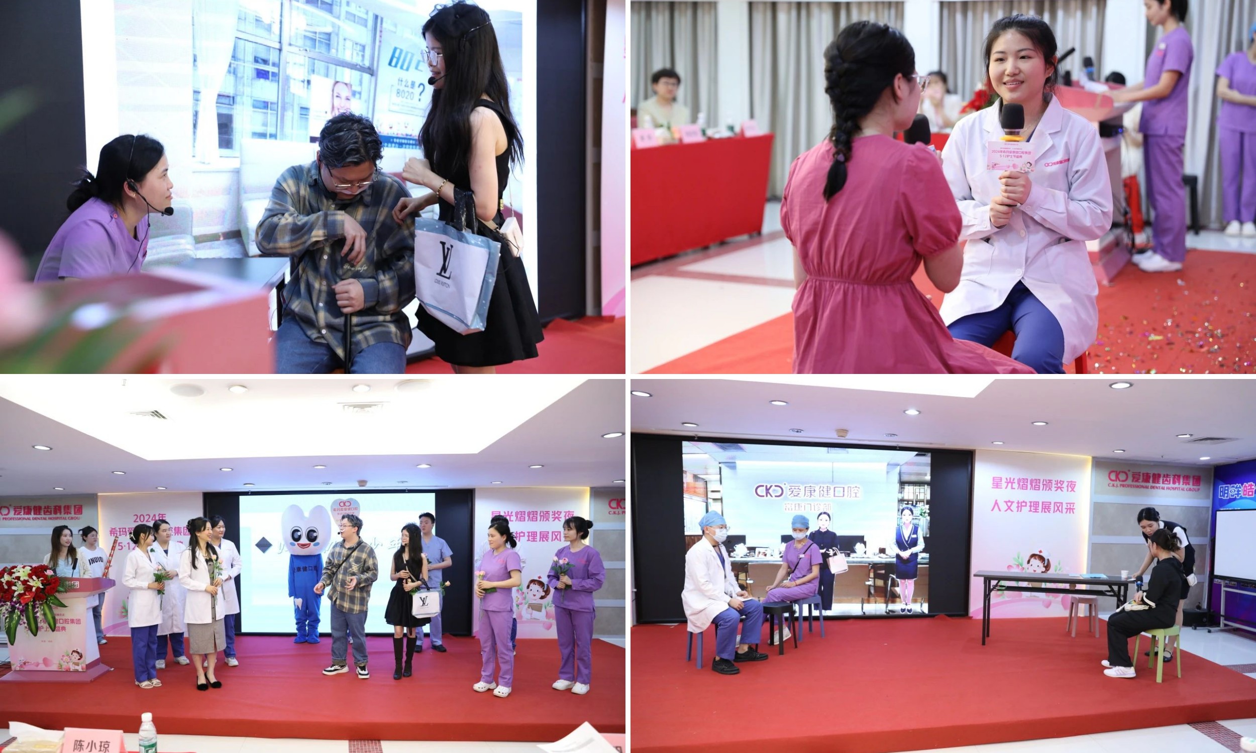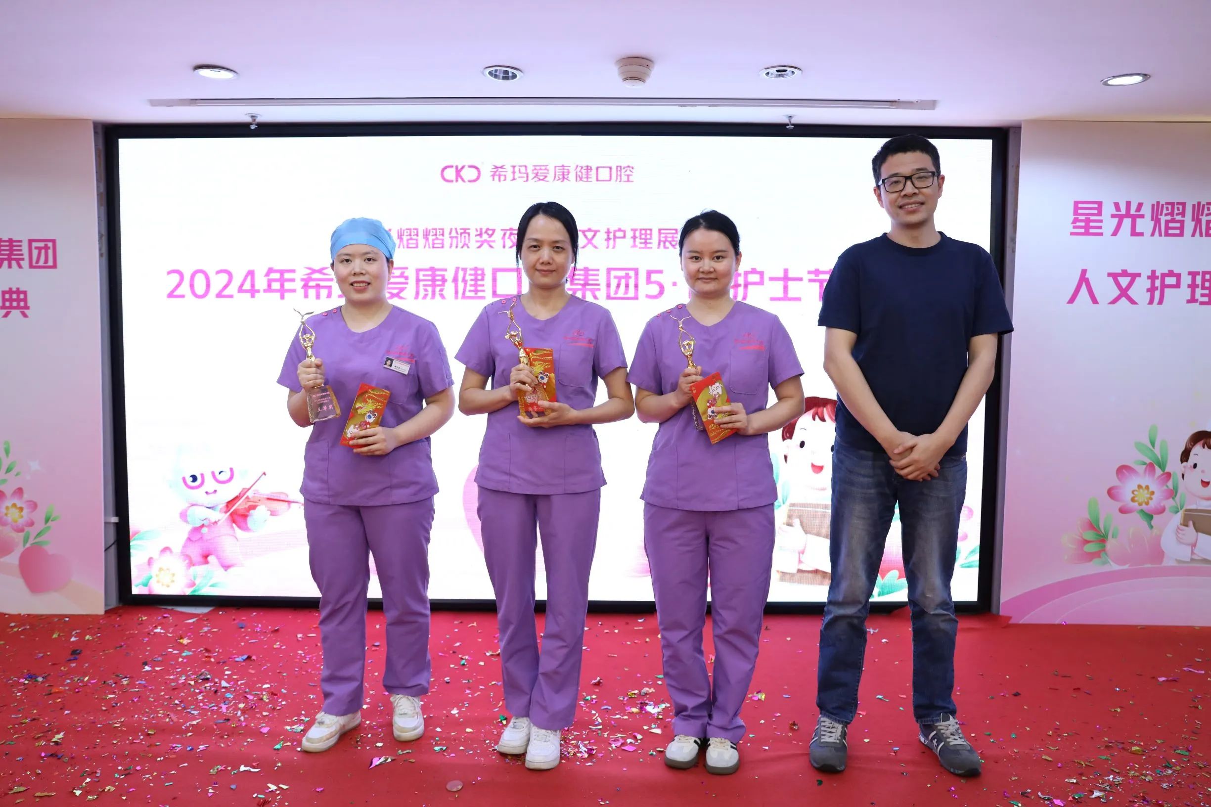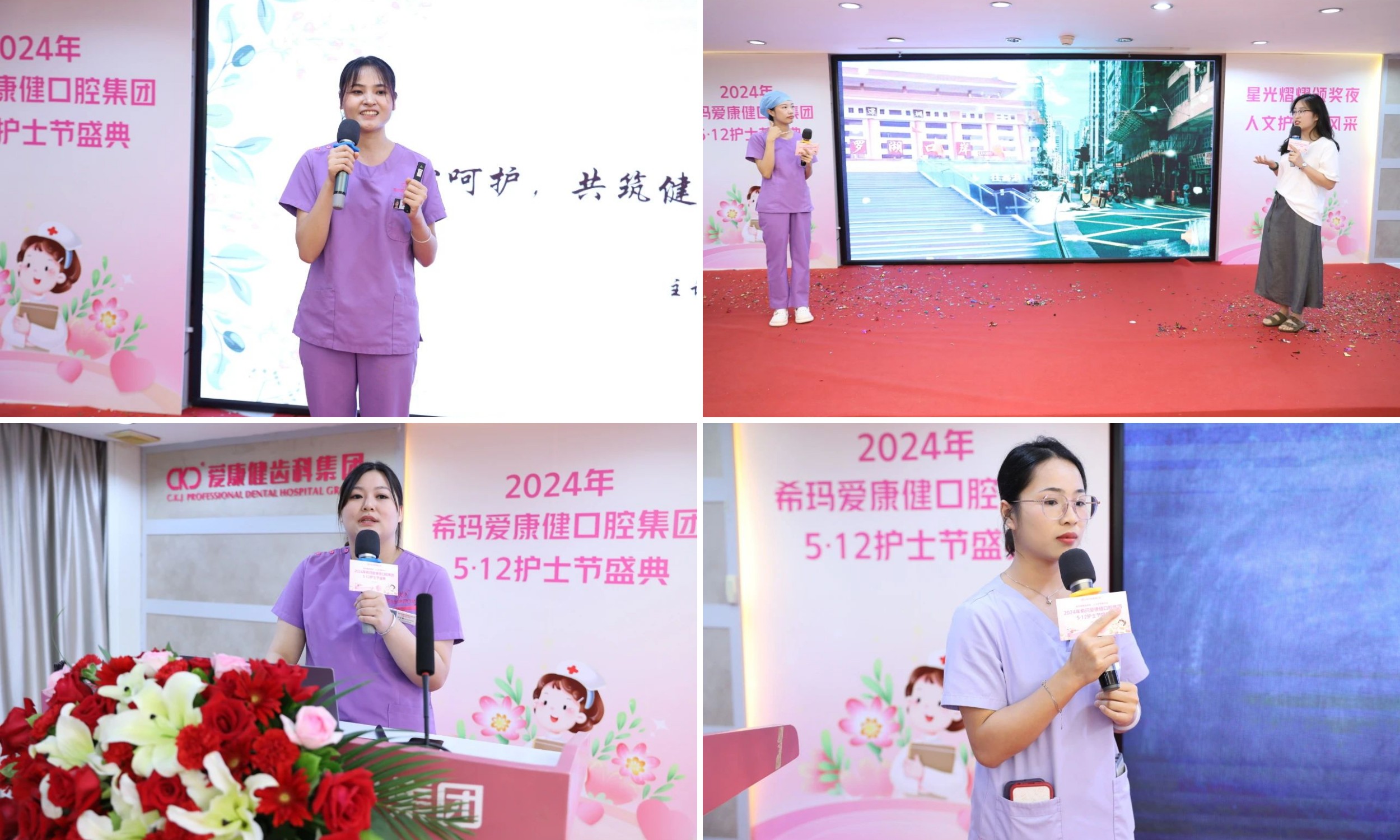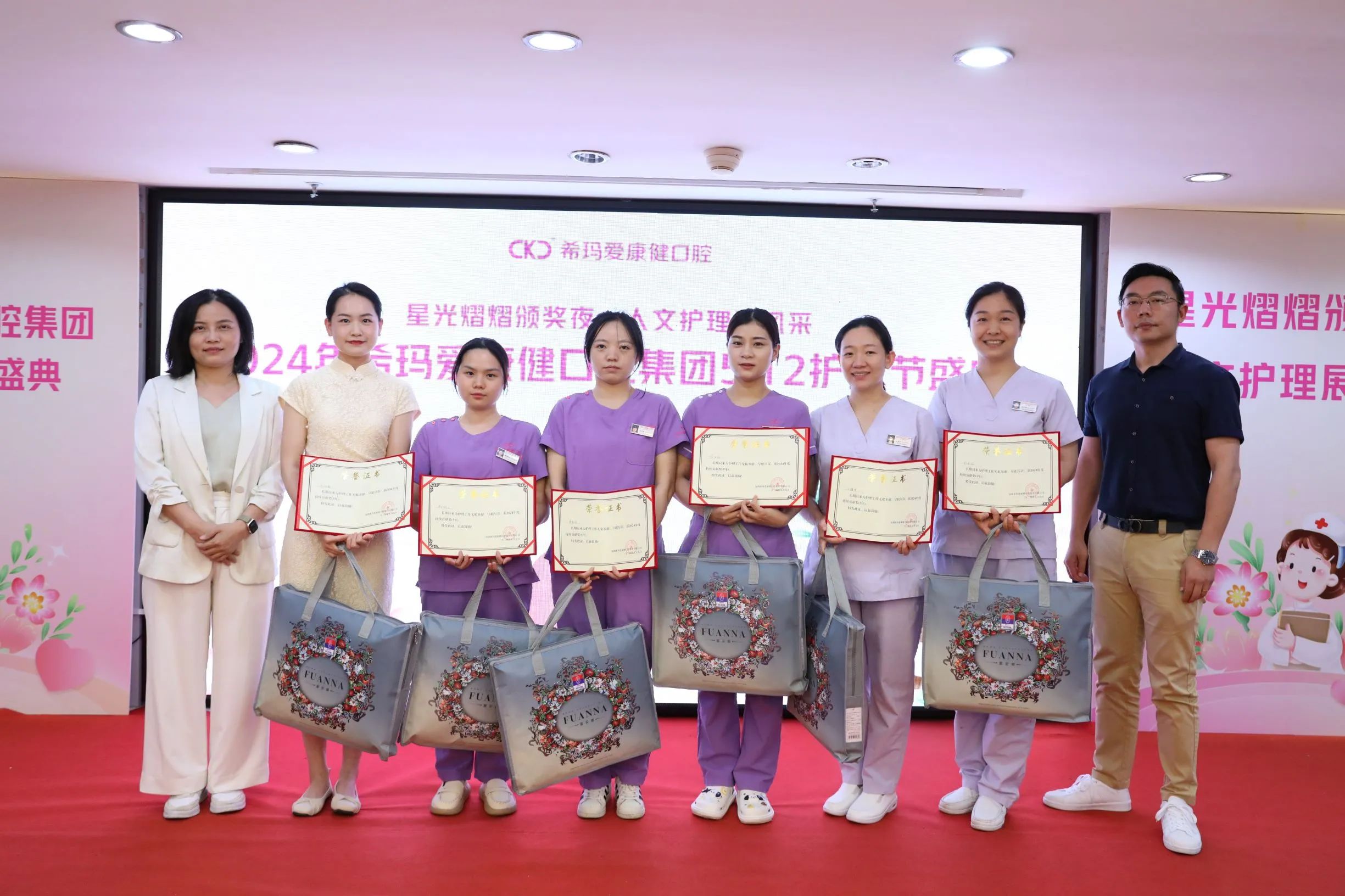 5月9日,在第113個(ge) 國際護士節來臨(lin) 之際,“星光熠熠頒獎夜,人文護理展風采”——2024年希瑪愛康健口腔集團5·12護士節盛典,在深圳愛康健口腔醫院八樓會(hui) 議室隆重舉(ju) 行。活動上,集團領導與(yu) 全體(ti) 護理人員共同慶祝這一屬於(yu) 白衣天使的節日,表彰和激勵了優(you) 秀護理人員在口腔護理工作中的傑出表現。