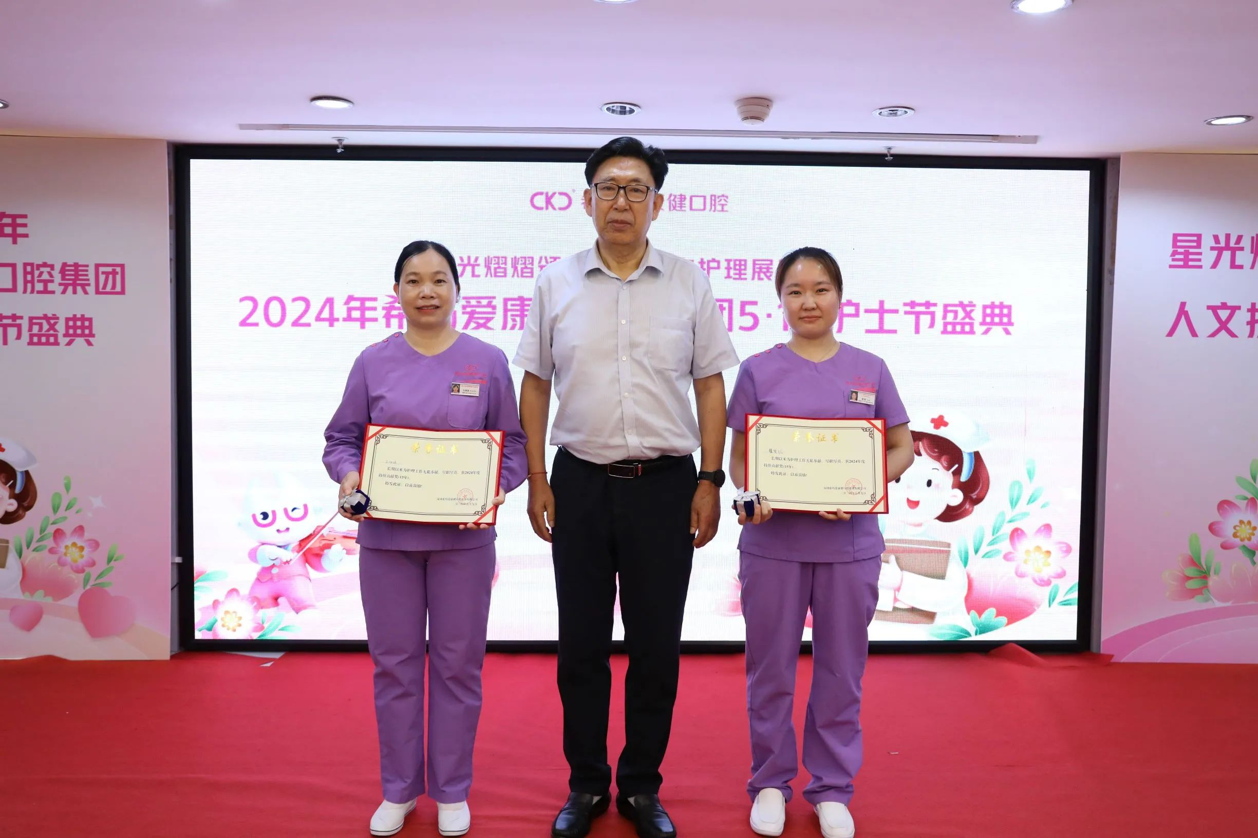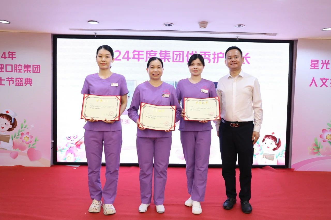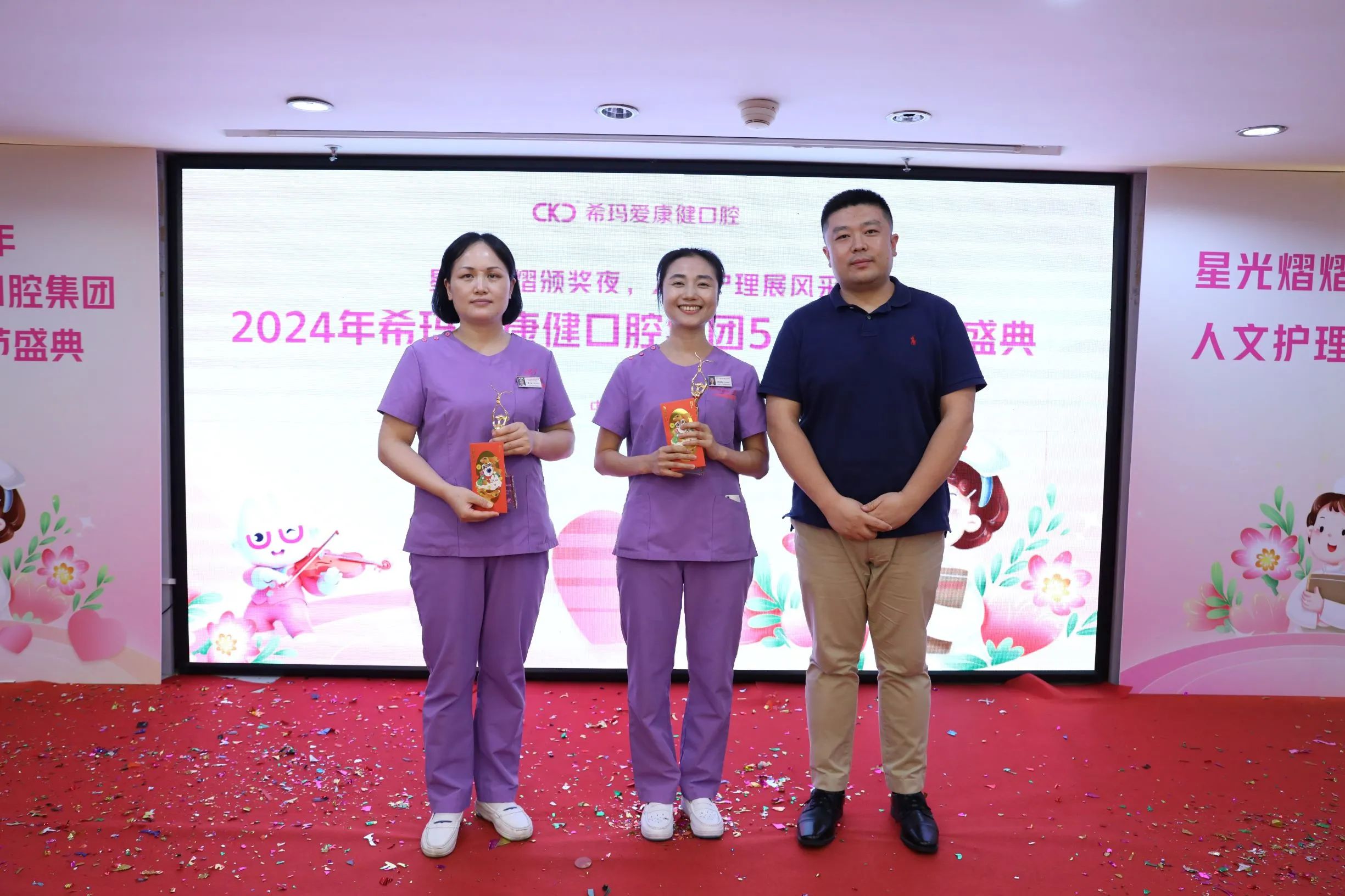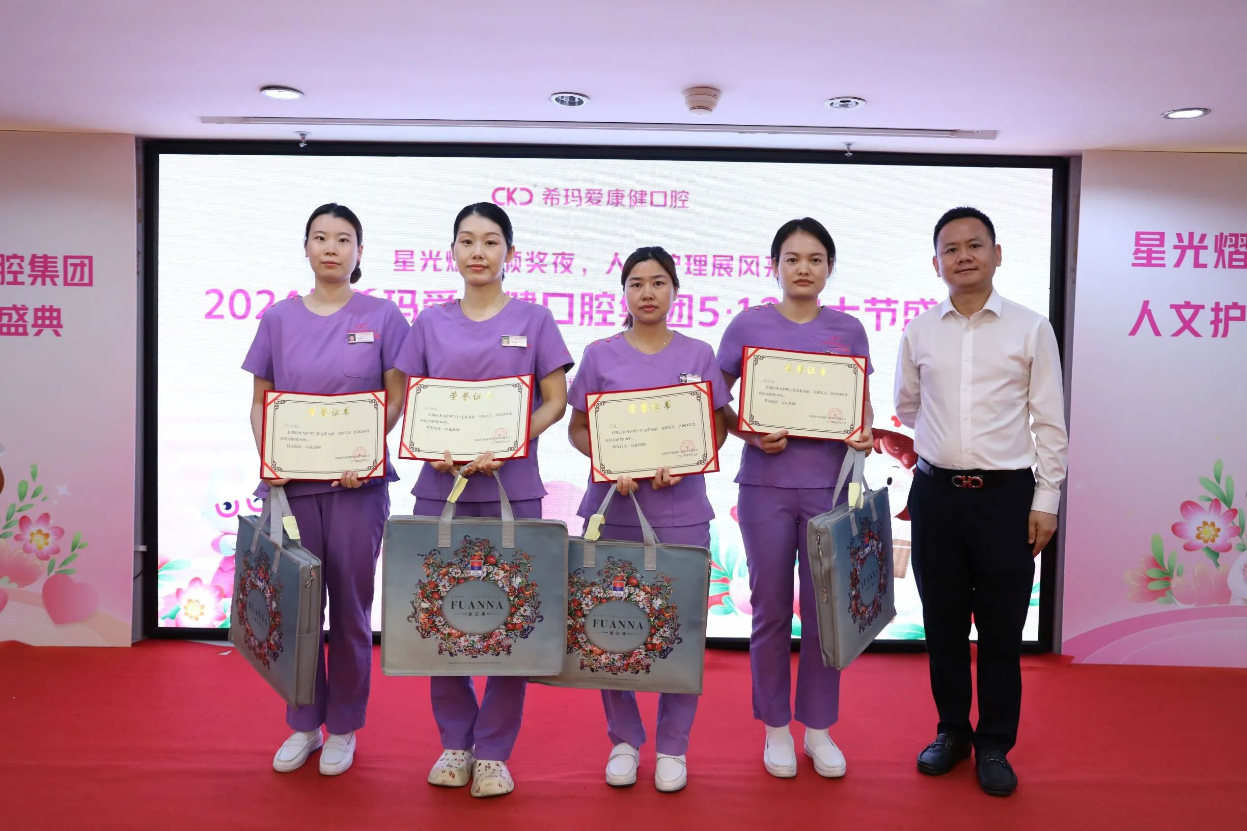 5月9日,在第113個(ge) 國際護士節來臨(lin) 之際,“星光熠熠頒獎夜,人文護理展風采”——2024年希瑪愛康健口腔集團5·12護士節盛典,在深圳愛康健口腔醫院八樓會(hui) 議室隆重舉(ju) 行。活動上,集團領導與(yu) 全體(ti) 護理人員共同慶祝這一屬於(yu) 白衣天使的節日,表彰和激勵了優(you) 秀護理人員在口腔護理工作中的傑出表現。
