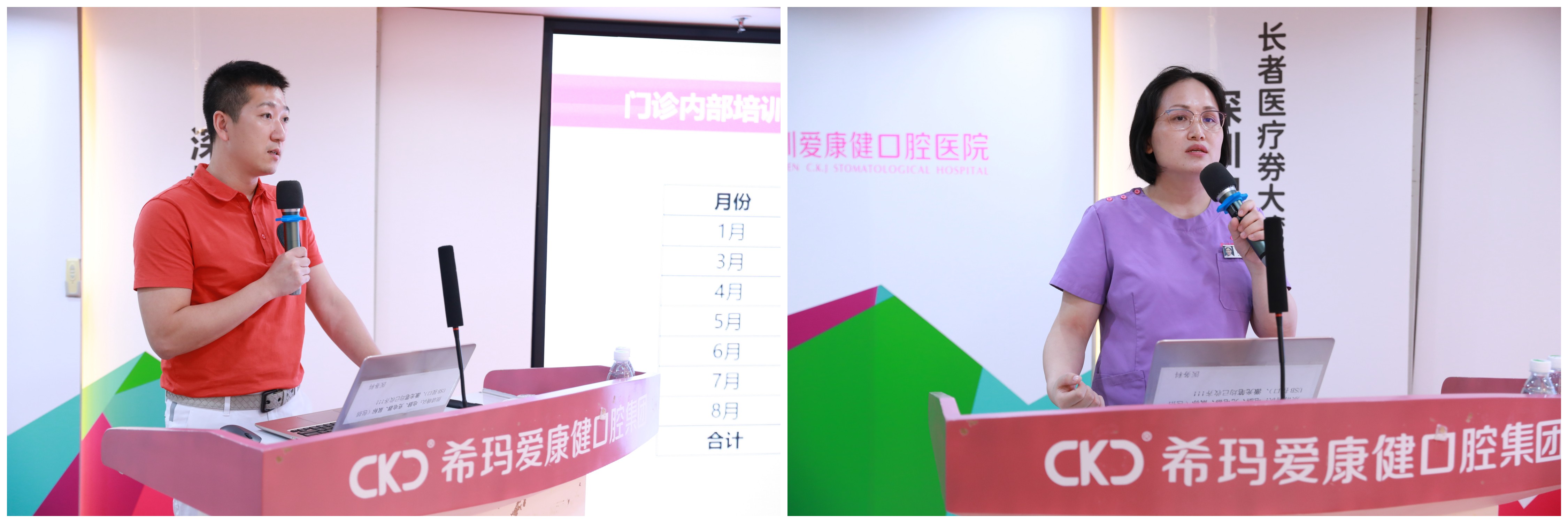 9月18日下午,希瑪愛康健口腔集團在深圳愛康健口腔醫院八樓會(hui) 議室隆重召開了2024上半年醫療培訓與(yu) 質控總結大會(hui) 。此次會(hui) 議不僅(jin) 是對過去半年工作的全麵回顧,更是對未來醫療品質提升戰略的重要部署。希瑪醫療集團執行總裁李肖婷、希瑪愛康健口腔集團董事邱淑賢、常務副總經理馬洪剛、副總經理陳小瓊、醫療管理中心總監唐輝、副總監李格、劉章智、周小明,愛康健口腔醫院院長鞏賢平以及集團各學科帶頭人等出席了本次會(hui) 議。