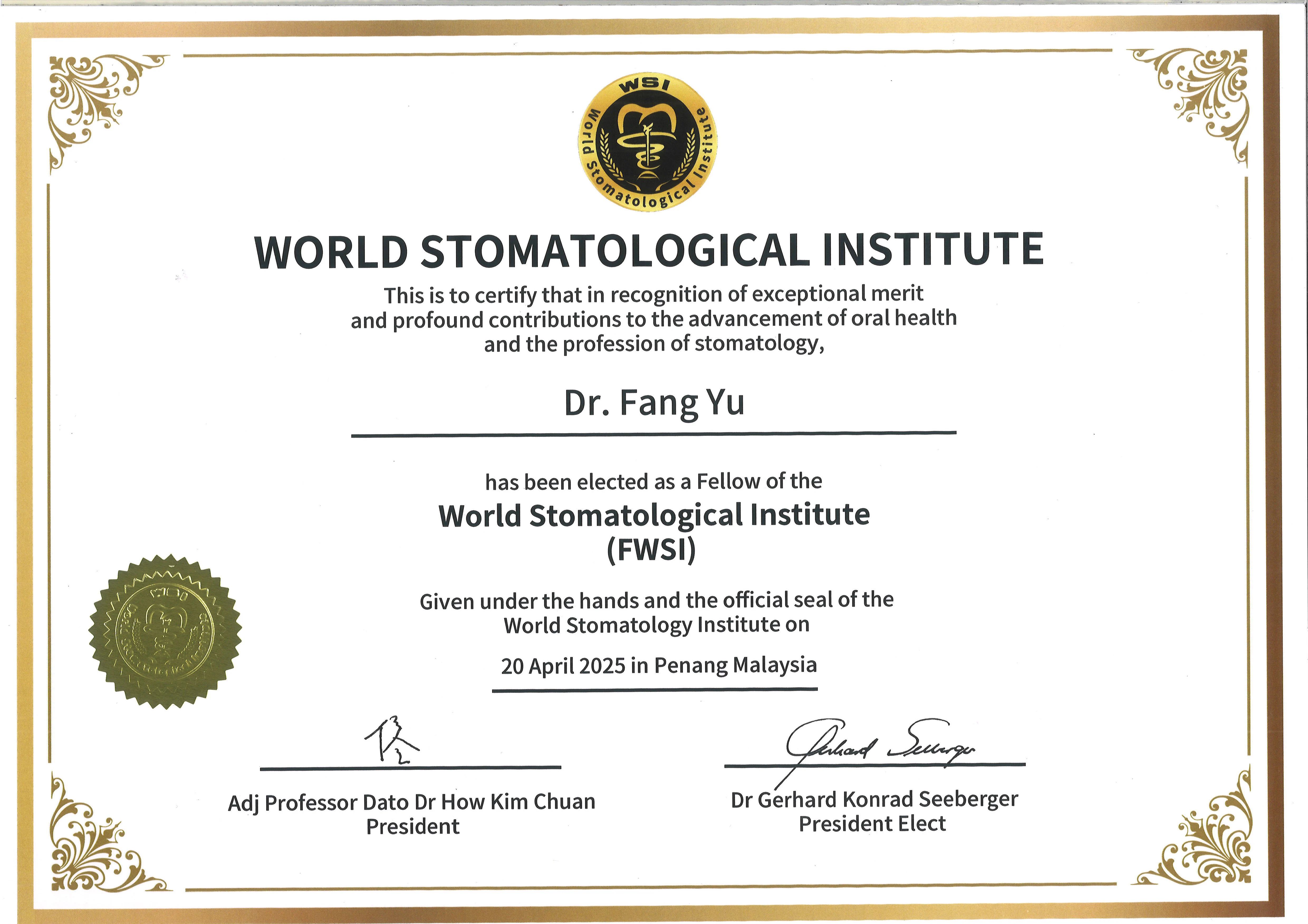 【方宇主任榮膺國際牙科雙院士殊榮】