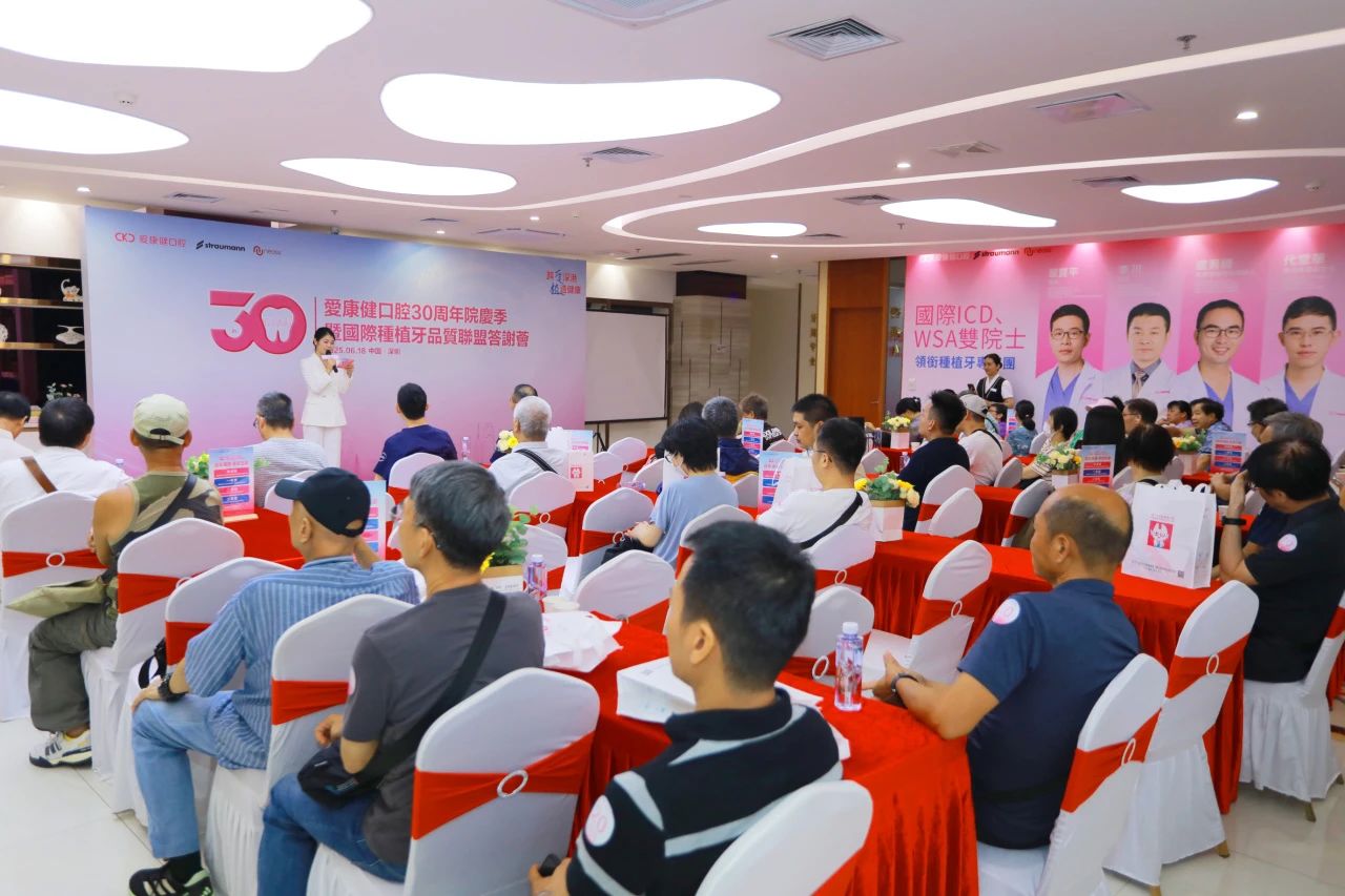 一位愛康健口腔的老客戶動情表示:“我第一次來愛康健種牙已經是十多年前了,在這些年裏我的女兒(er) 、我的孫女都是在愛康健看牙,也是愛康健的精準種植方案讓我重獲咀嚼的快樂(le) 。從(cong) 術前檢查到術後維護,每個(ge) 環節都讓我感受到專(zhuan) 業(ye) 與(yu) 溫度。”真實案例引發在場觀眾(zhong) 共鳴,多位意向客戶現場谘詢診療方案,印證了“金杯銀杯不如顧客口碑”的醫者初心。