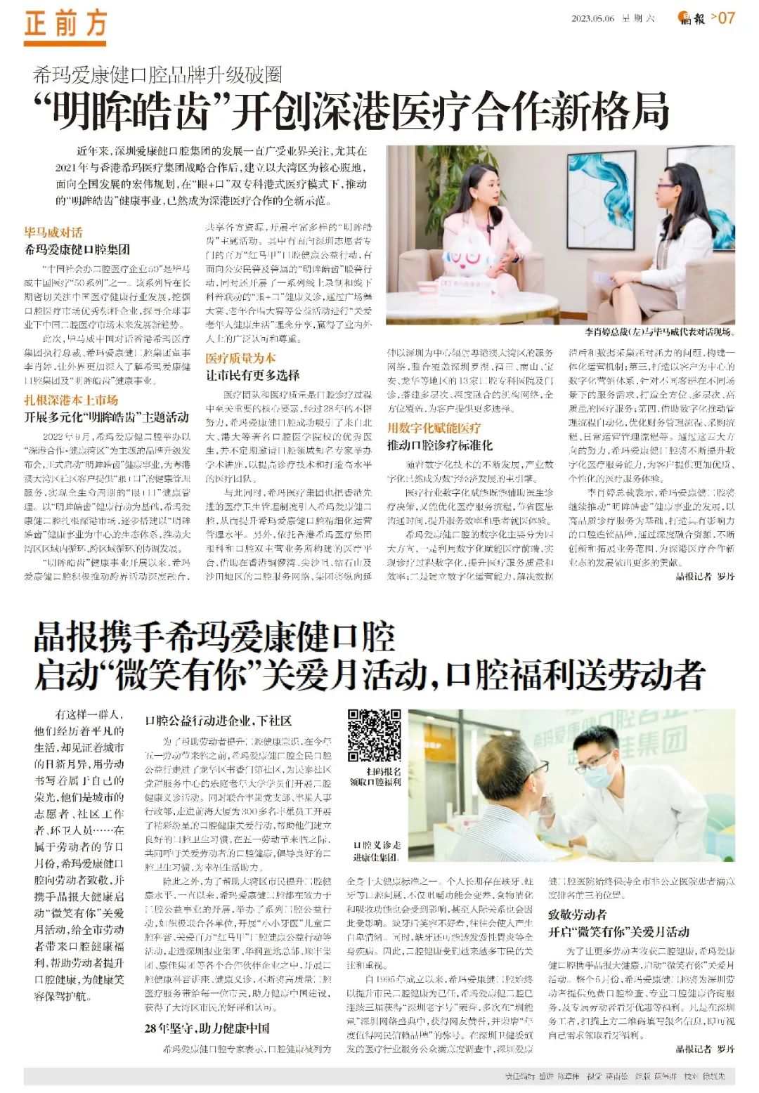 5月6日,晶報整版07版、晶報APP對希瑪愛康健口腔李肖婷總專(zhuan) 訪報道以及口腔關(guan) 愛月活動報道