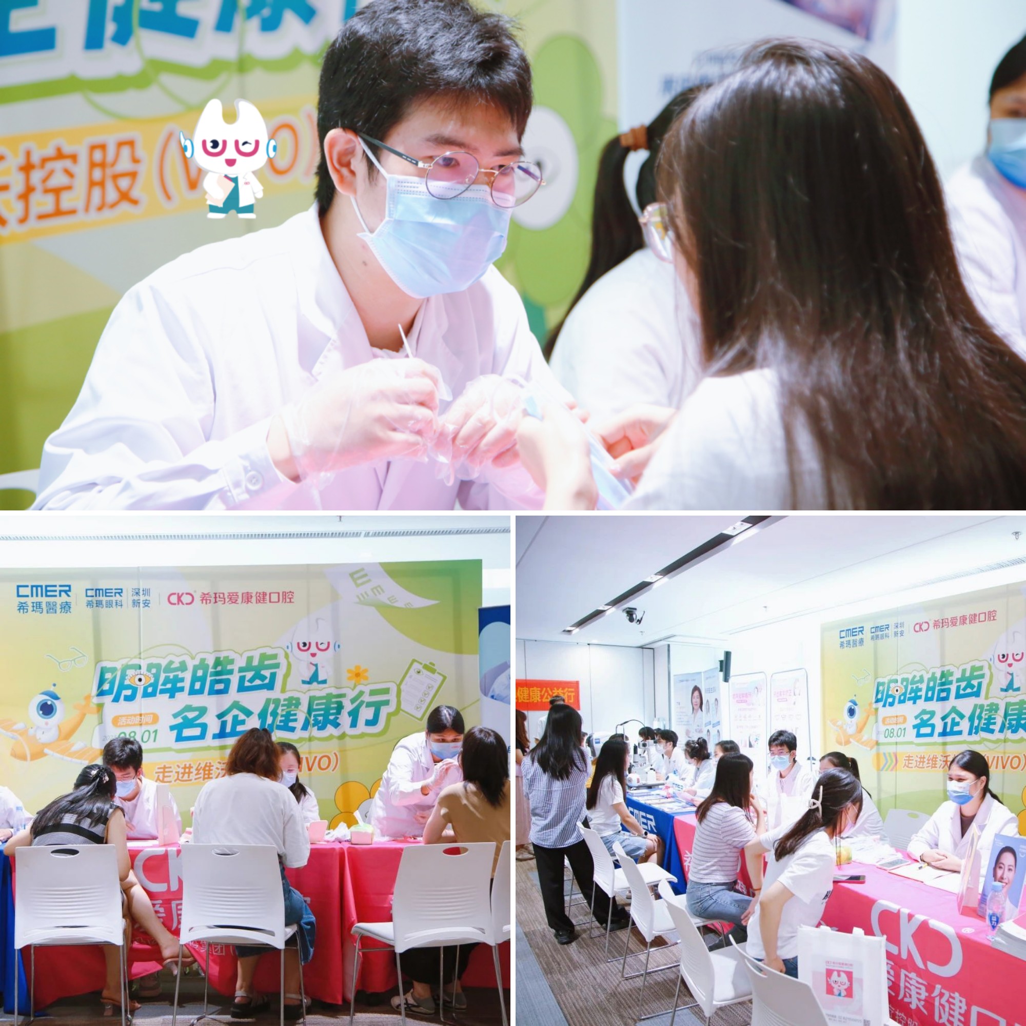 口腔健康是人體(ti) 健康的一麵鏡子,是全身健康的重要組成部分。健康的牙齒不僅(jin) 可以提高我們(men) 的生活品質,還可以讓我們(men) 生活更愉悅。8月1日,希瑪愛康健口腔攜手希瑪眼科走進維沃控股有限公司(vivo),在壹方中心CBD寫(xie) 字樓、步步高大廈vivo深圳兩(liang) 個(ge) 辦公樓同時進行“明眸皓齒”名企健康行活動,為(wei) 3000餘(yu) 名員工提供口腔和眼睛的篩查、專(zhuan) 屬口腔福利及科普宣教,幫助他們(men) 提升口腔健康及用眼健康,擁抱更美好的生活。