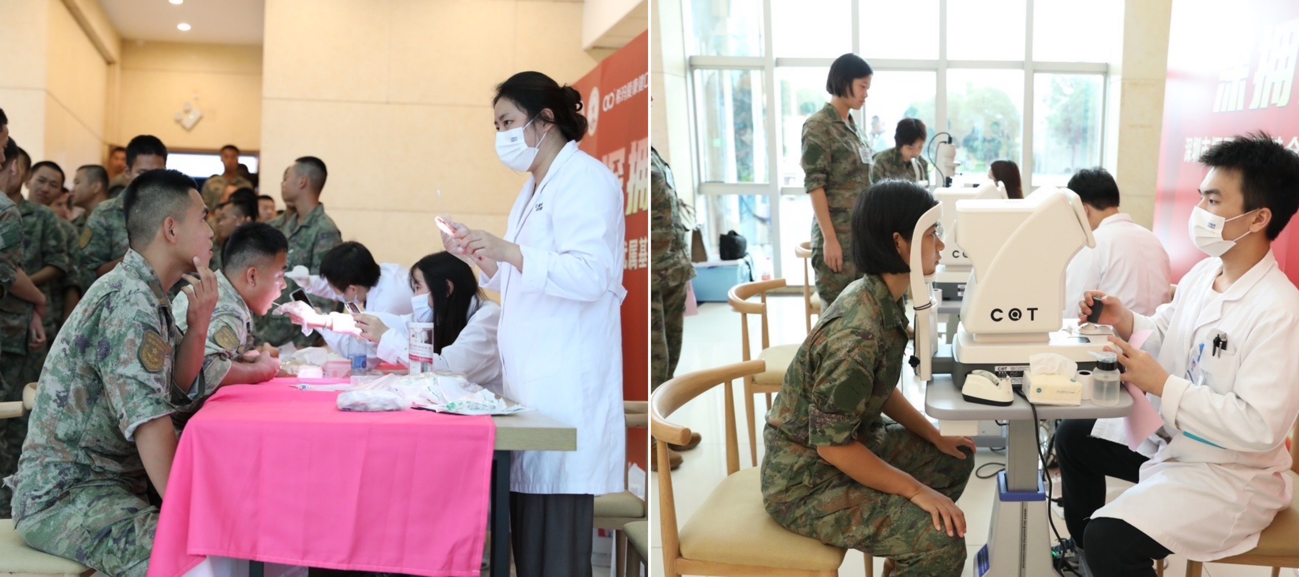 活動現場,深圳市擁軍(jun) 優(you) 屬基金會(hui) 聯合香港希瑪醫療集團設立了深圳市擁軍(jun) 優(you) 屬基金會(hui) ·希瑪明眸皓齒基金,李總代表希瑪醫療集團、希瑪愛康健口腔集團向深圳市擁軍(jun) 優(you) 屬基金會(hui) 首期捐資30萬(wan) 元。與(yu) 此同時,希瑪愛康健口腔、深圳希瑪林順潮眼科醫院派出專(zhuan) 業(ye) 的眼科和口腔醫療團隊,為(wei) 現場300多名新兵進行詳細的“眼+口”健康檢查,幫助軍(jun) 人們(men) 了解自身“眼+口”健康狀況,提高他們(men) 的“眼+口”健康意識。
