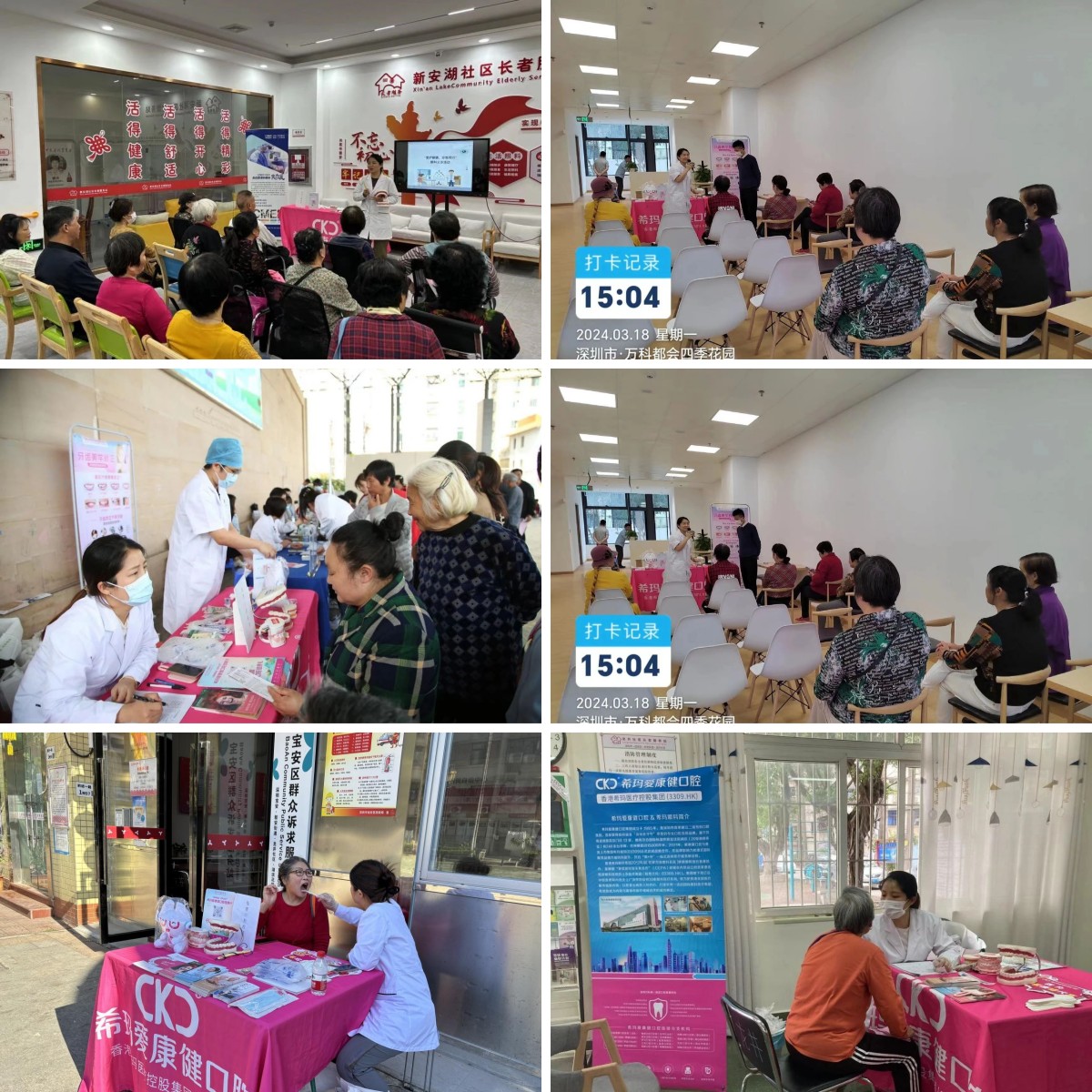 3月3日、5日、12日、13日、18日、19日、21日、27日、28日,希瑪愛康健口腔相繼走進海裕社區、新安湖社區、龍井社區、快樂(le) 之家“凱旋城”、富華社區、石岩料坑新村社區、海濱社區、新安湖社區,共計8個(ge) 社區,舉(ju) 辦了10場特色社區義(yi) 診活動。在這些活動中,希瑪愛康健口腔的團隊為(wei) 居民提供了免費的口腔檢查、健康谘詢等服務。同時,他們(men) 還針對不同社區的特點,開展了一係列豐(feng) 富多彩的健康宣教活動,如口腔健康講座、口腔保健知識問答等,吸引了眾(zhong) 多居民前來參與(yu) ,現場氣氛熱烈。
