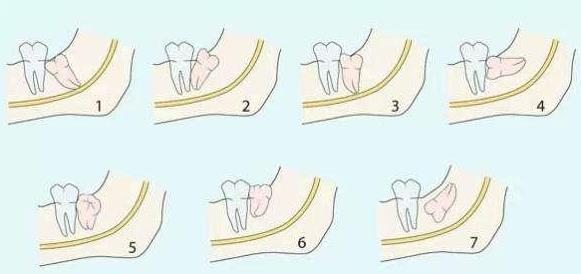 右側(ce) 黃色的為(wei) 智齒,各種位置和方向的都有,所以通常需要拍片確定智齒的具體(ti) 情況。