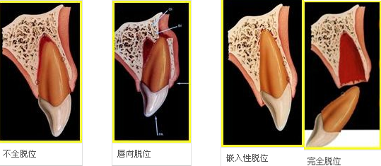 牙受外力作用而脫離牙槽窩者稱為(wei) 牙脫位。是牙外傷(shang) 多種表現形式(牙周膜損傷(shang) 、牙體(ti) 硬組織損傷(shang) 、牙脫位、和牙折)中的一種,特點是牙齒脫離牙槽窩,多伴有牙齦的撕裂和牙槽骨突的骨折。由於(yu) 外力的大小和方向不同,牙脫位的表現和程度不一,輕者偏離移位,稱為(wei) 不全脫位;重者可完全離體(ti) ,稱為(wei) 全脫位。